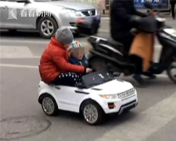 还好是遇上了巡逻的交警,不然后果不堪设想,交警提醒:玩具电动车可以买“路虎”的,看孩子这件事儿可不能“二虎”。